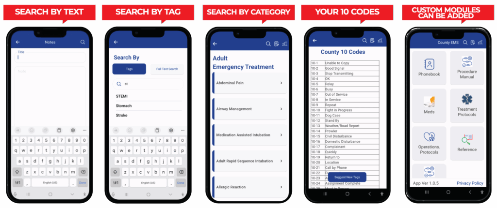 EMS providers won’t need to leave the scene of an emergency for any reason or spend precious time thumbing through a large binder, as they can gain instantaneous access to EMS protocols and drug